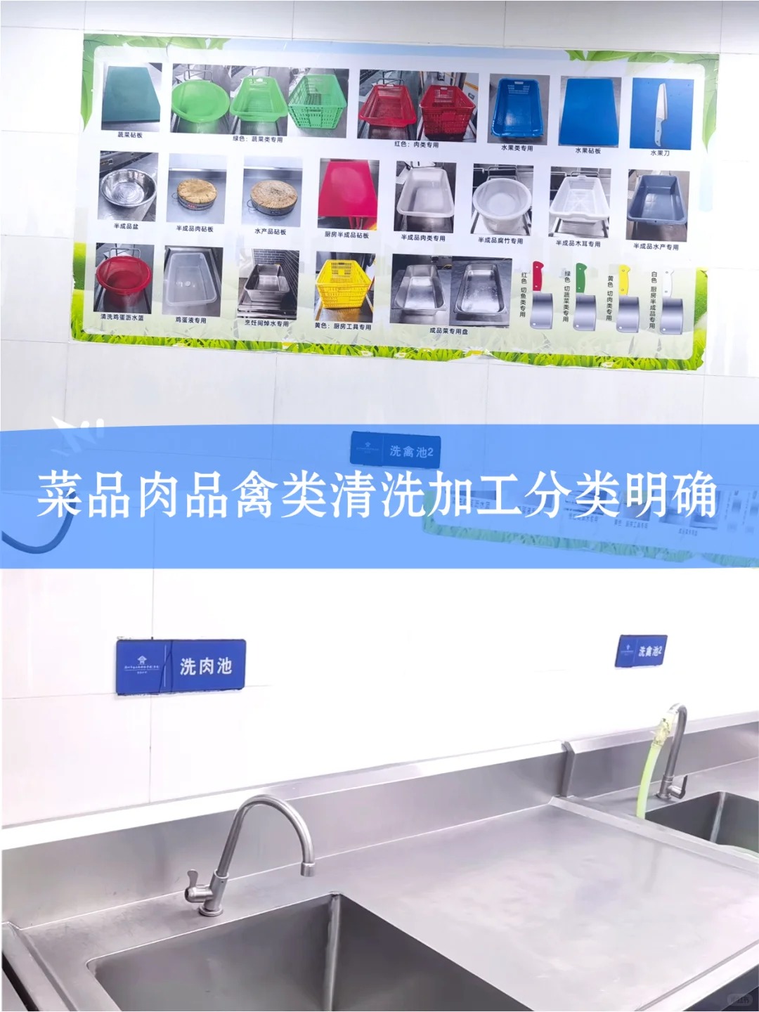 清洗池清清楚楚分了 “青菜池、肉类池、禽类池”,再也不怕食材交叉污染;